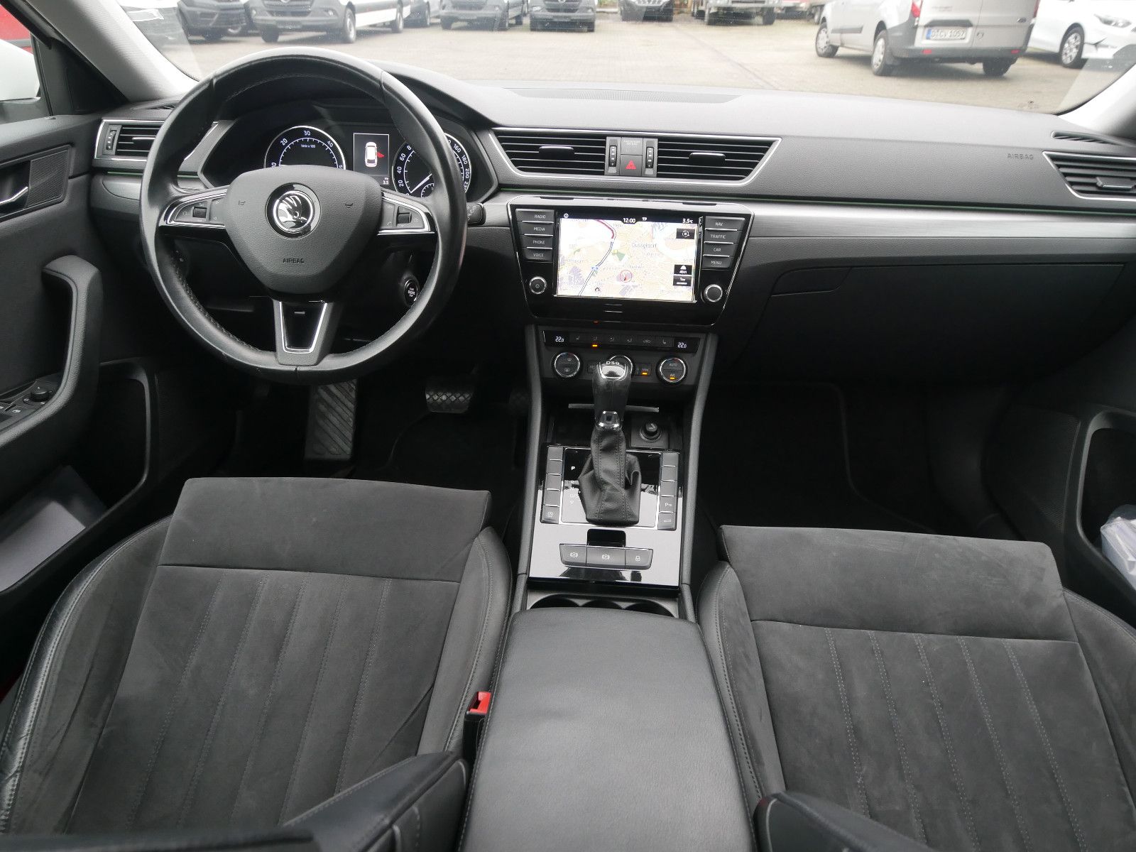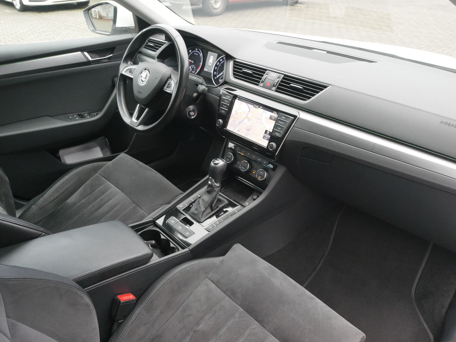 - Sitzbezug / Polsterung: Alcantara/Leder